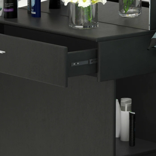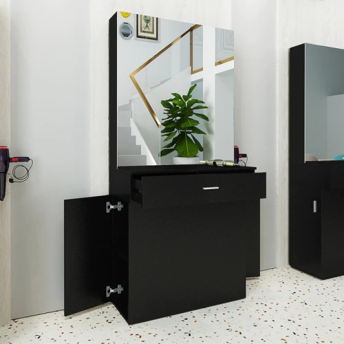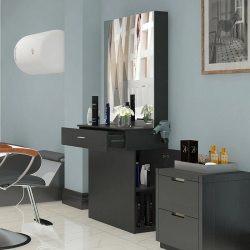- This line wall-mounted styling station is multifunctional ample storage workstation.Its clean lines mean that it will look great in just about any salon. This station is made out of particle board.