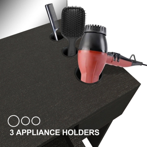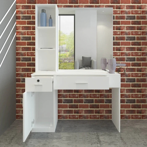 This line wall-mounted styling station is multifunctional ample storage workstation.Its clean lines mean that it will look great in just about any salon. This station is made out of particle board.
