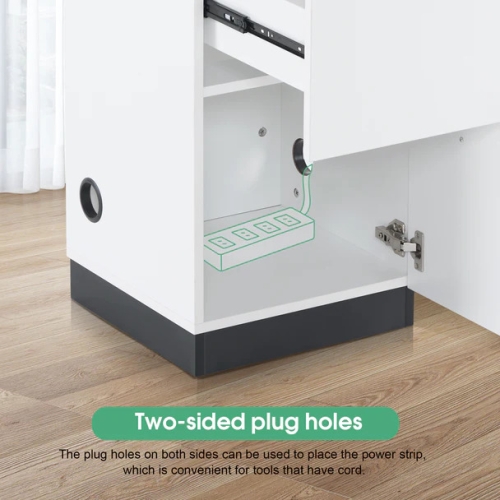 - Sorted Storage: The barber cabinet comes with the drawers including a special drawer for tools that have power cord. The wire of the heating tools can be connected through the nylon tool holders to the power strip that placed in the bottom cabinet.