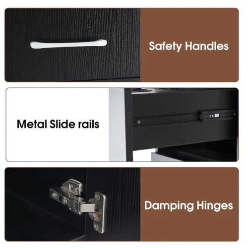 - High-quality Material: This beauty cabinet is made of high-quality particle board. With the premium metal slide rails and damping hinges, you can slide the drawers and pull the cabinet doors quietly.
