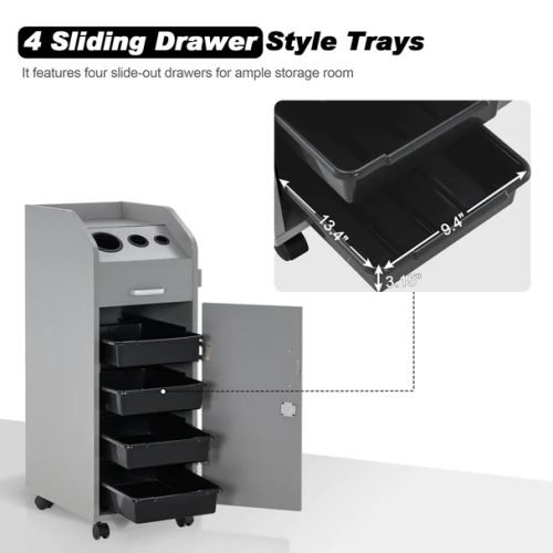 - EASY MOBILITY: This salon car included 4 big wheels with 2 front wheels smart brakes. The trolley rests on four, smooth-rolling swivel casters for easy mobility around the work area