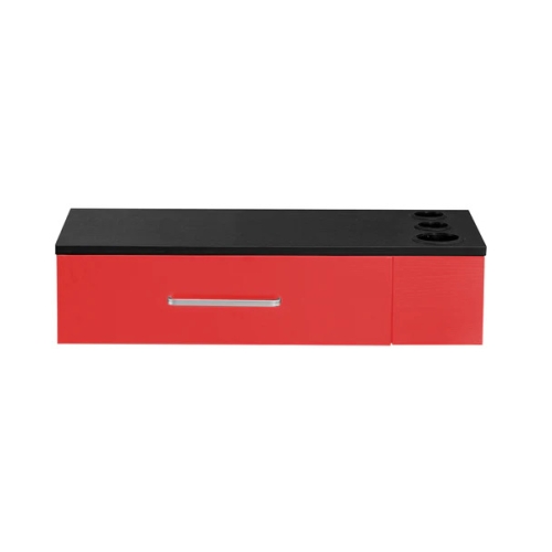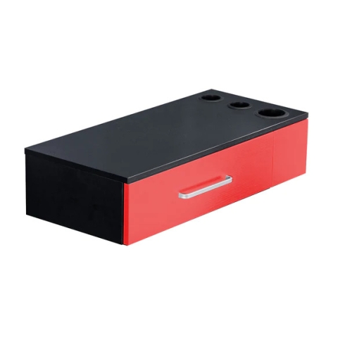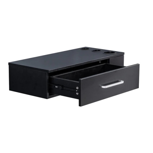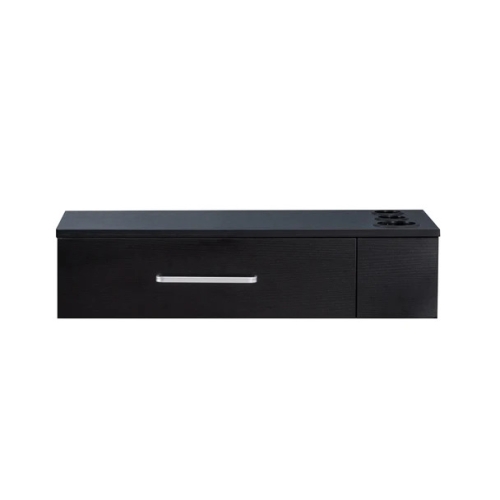 This line wall-mounted styling station is multifunctional ample storage workstation. The contemporary style design comes from Europe. Its clean lines mean that it will look great in just about any salon. This station is made out of particle board. The Particle Board surface is veneer-faced decorative board showing slick uniform black color. The black veneer-faced decorative board increase the brightness, not to be worn to protect the surface, easy to clean.