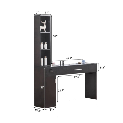 This wall-mounted styling station is a multifunctional workstation with ample storage. It is European contemporary style design.The streamline design makes it a beautiful look in just about any salon. The station frame is made from particle board. The particle board surface is veneered in slick uniform black/red color. The veneer decorative board increases the brightness of the surface, protects the surface from worn, and is easy to clean.