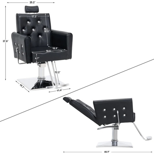 - ANTIQUE DESIGN: Welcome look with exquisite stitching brings elegant and antique taste to the whole style of barber shop/salon shop. Hand-made sequins around the stitching, shining acrylic diamond on the backrest and armrest decorates the soft leather, which adds modern elements to the vintage design.