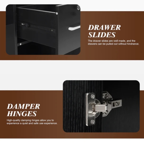 - High-Capacity: No barber could stay in the mood when the desk in front of you is full of cluttered tools. This stylish vanity table features 1 large cabinet, 3drawers and 3 shelves to accommodate a variety of different types of items. Ample storage space keeps your desktop looking more organized.