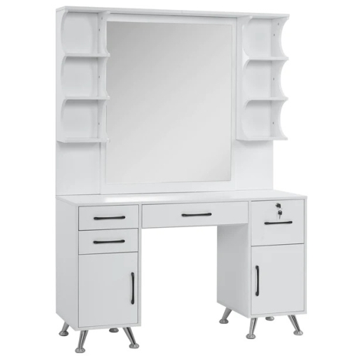 - Ample Storage: This workstation has plenty of storage space, it includes 6 shelves, 2 cabinets and 5 drawers to make your space orderly. This station cleverly uses space, can accommodate a variety of different shapes of items to make your environment cleaner and create coordinated organization in any hair salon.