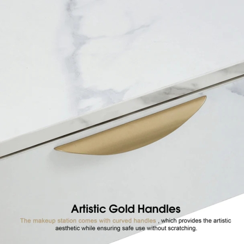 • Personalized Design: The curved metal handles complement the overall makeup station and do not scratch hands while using it. The sunken desktop design makes the entire dressing station more personalized and artistic.