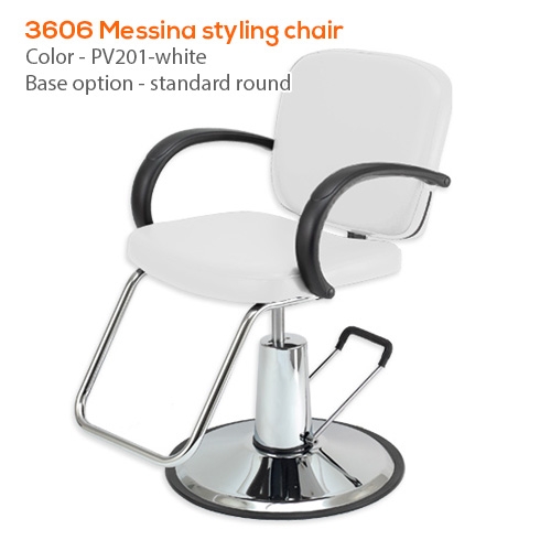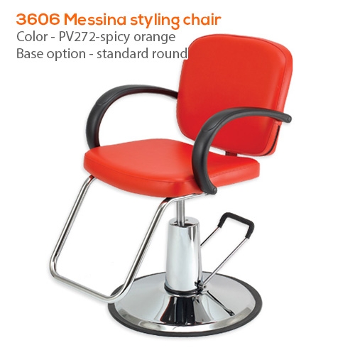 The Pibbs 3606 Messina Hydraulic Styling Chair is Made in the USA by Pibbs Industries and is available in 40 different Fabric Colors. Since it is made in the USA this is an extremely high quality salon chair and comes with a 3 year warranty on the Hydraulic Pump. This styling chair by Pibbs is made with black molded urethane arms that are very durable and stylish. It also has a very wide seat that will fit all of your larger customers. If you are looking for a high-quality styling chair that is great looking at an affordable price this is the chair!