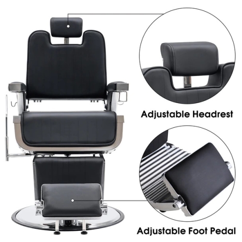 • Ergonomic Design: Designed to fit the natural shape of the human back, our barber chair allows you to sit for a long time without getting tired. High-density sponges make the back and seat cushions become more comfortable.