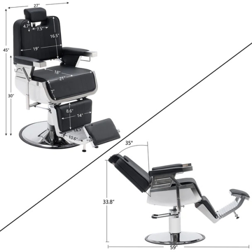 • Durable Structure:The barber chair is exquisite in design and durable in structure, heavy-duty hydraulic pumps and a 27-inch chrome base that can support 450 pounds. In addition, a heavier frame can effectively prevent all kinds of shaking.