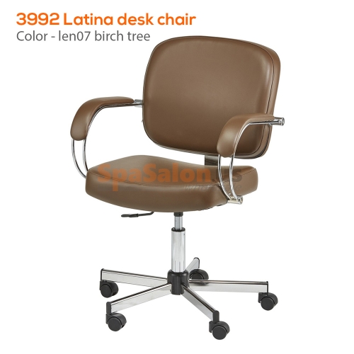 The Pibbs 3992 Latina Desk Chair is a perfect seating solution for the receptionist at any salon or spa. This salon reception chair features durable chrome arms, upholstered armrests and it is elegant and built to last. The Latina Desk Chair also features a sturdy 5 star chrome base with an adjustable lift to fit any reception desk. It is available in 40 vinyl colors so you will easily be able match and compliment the colors of your salon or spa!