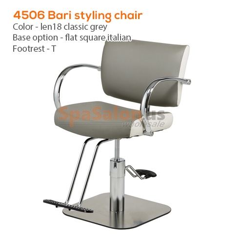 The Pibbs 4506 Bari Styling Chair is manufactured in the U.S.A. 4506 Bari Styling Chair features a cushioned extra-wide seat, a modern low-cut back cushion, a heavy-duty hydraulic pump, two Durable Footrest options, and rounded chrome armrests that give this chair a modern and stylish accent. The Pibbs 4506 Bari Styling Chair is designed with durability, client comfort, and world-class style in mind, while adding a chic, modern touch to any salon.