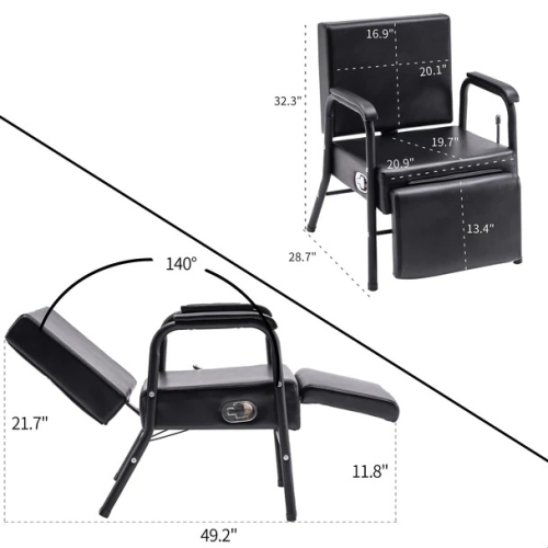 - Multiple Function: Backrest and foot pedal are designed to adjust separately, more convenient to satisfy the needs for customers with high practicability. The left metal button for back reclining, the right lever for foot pedal adjustment. It can be used as shampoo chair, waiting lounge chair and leisure chair for various use. Backrest relines up to 140 Degree.