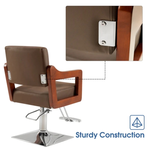 - Classic Design - Combined with the fashion styling, modern aesthetics and fine workmanship, this salon chair is humanized design and extraordinary suitable for any sort of barber shop/salon shop, home salon, and more.Wooden smooth frame of armrests bring elegance and unique flavor to the style of the whole barber shop.