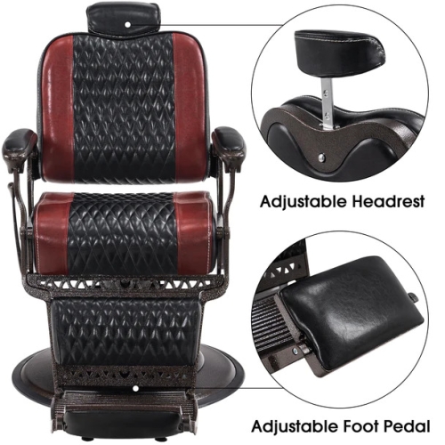 - Easy To Assemble&Clean: The vintage barber chair only needs you to go through a few simple steps to complete the installation.The leather of this reclining hydraulic styling chair is more convenient for your daily cleaning.Dark colors are also more practical. If there is a hair dye stained on it, just use a cotton cloth dipped in gasoline to easily remove the stain.