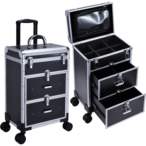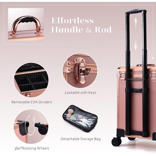 - Travel Makeup Rolling Case with Locks: Four 360°rotating wheels are detachable (Detachable wheels can be easily removed or replaced if needed.) and three layers of this makeup case are lockable with key make sure you can move the trolley to anywhere easily and prevent loss of your expensive makeup when you are doing outdoor makeup or having beauty lesson