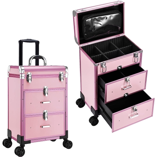 - Stylish Matte Design: Adazzo rolling makeup train case with drawers matted pink, a low-key but high-end color, will always be fashion and stylish. It is eye-catching and professional to work with Adazzo Makeup rolling case, there are 3 colors to choose:Classic matte black, classic matte black, fashion matte gold