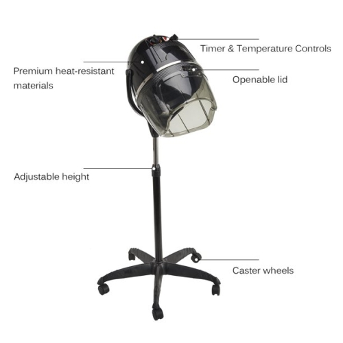 Try out our newest offer, this versatile hooded hair dryer is manufactured with stainless steel heating element to ensure durability and performance. Tons of adjustments are available so every user can find their favorite position when drying their hair. Perfect for home use or hair salons.