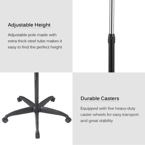 • Swivel casters and adjustable height accommodate different needs