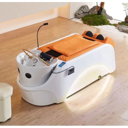 Give your clients a Full Spa Hair Washing Experience! Each shampoo basin set includes fumigation machine and fumigation dome. Equipped with special effects such as ambient lighting, rotating spa head, mounted neck barrier, Faux Leather cover,heated 4d human touch massage.Unit holds 40L Water, includes Fumigation & adjustable Heating Settings.