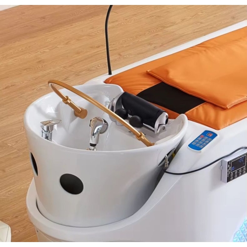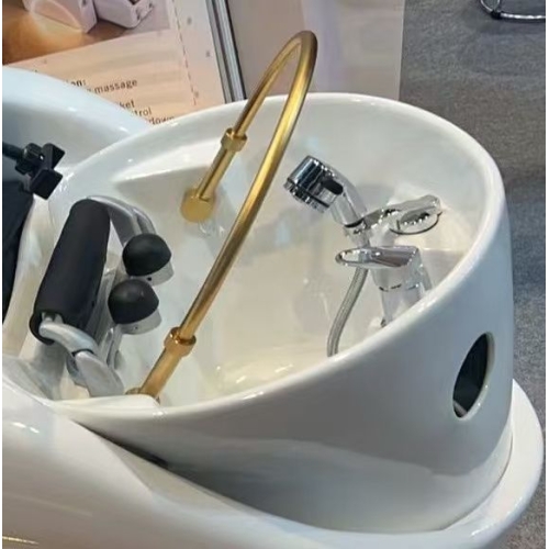 - Ceramic shampoo basin with shower head and therapeutic golden halo water circulation ring.