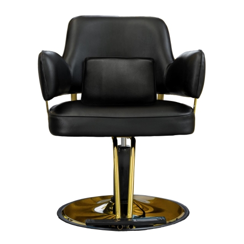 The MONCLER Styling Chair in Black and Gold brings luxury and sophistication to any salon setting. Crafted with high-quality leather upholstery and accented with a sleek gold metal frame, this chair offers both style and comfort.