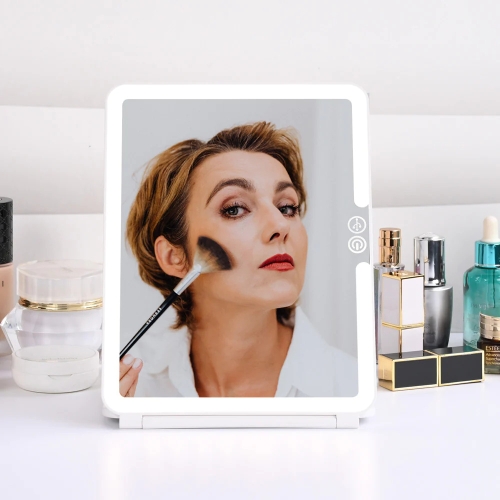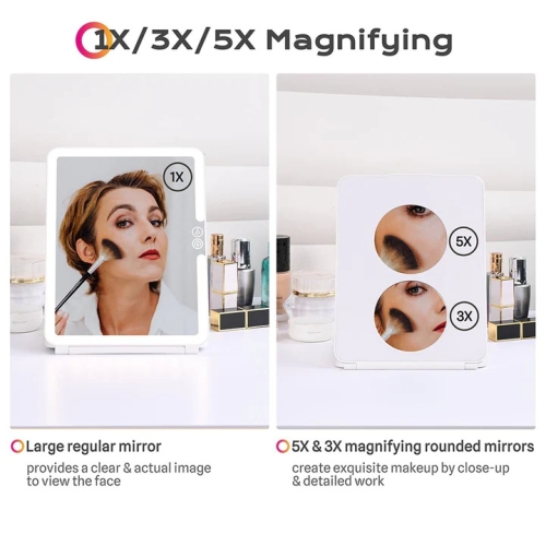 Do you need a perfect mirror for all your daily needs? Then you must not miss it. Travel Vanity Mirror with foldable and ultra-thin & lightweight design can be easily stored and portable. It features 1X/3X/5X mirror, 3 color modes and adjustable brightness.