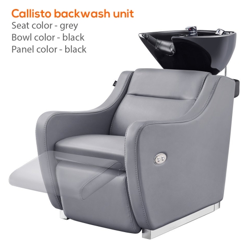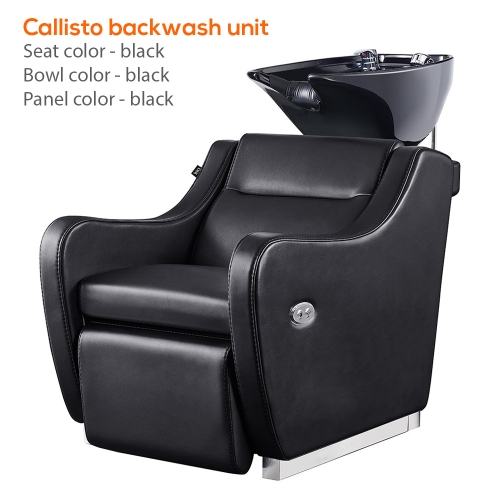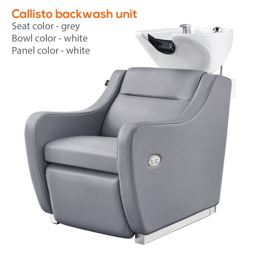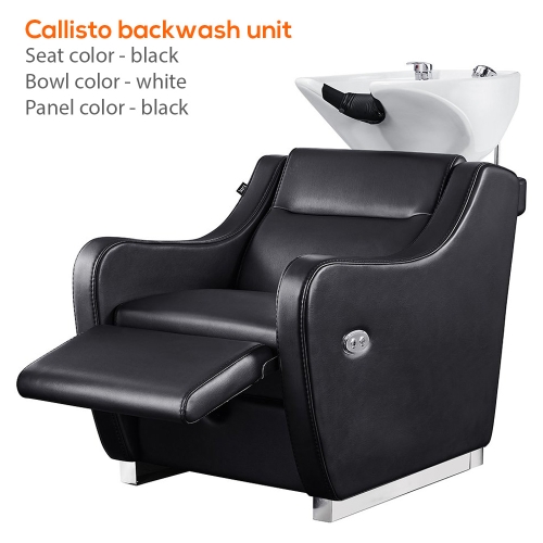 This Callisto is a comfortable and stylish backwash with adjustable sink. The ceramic sink has a silicone neck rest, explosion-proof and water-saving shower. Extra comfort from its covering of high density memory foam combined with electric adjustable footrest. Accompanying this backwash unit is our styling chair Bellano.