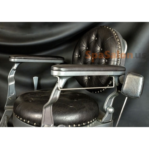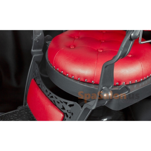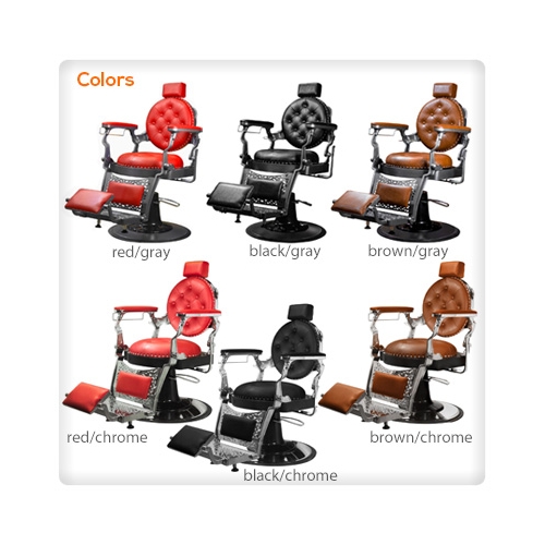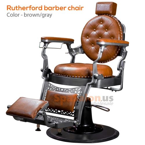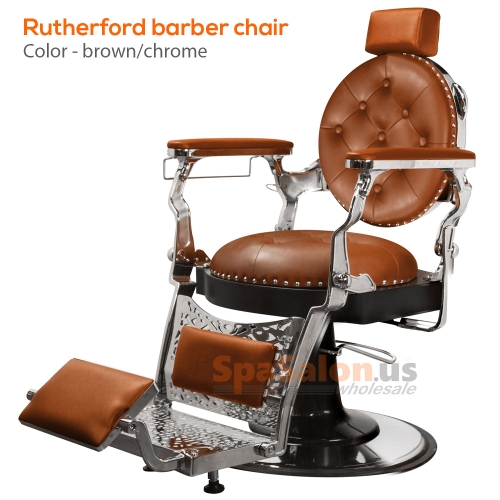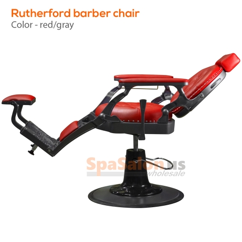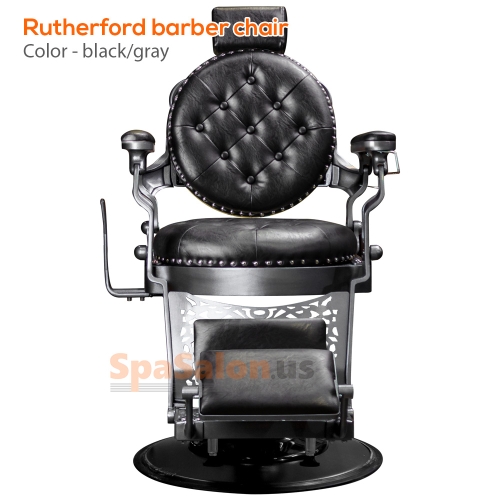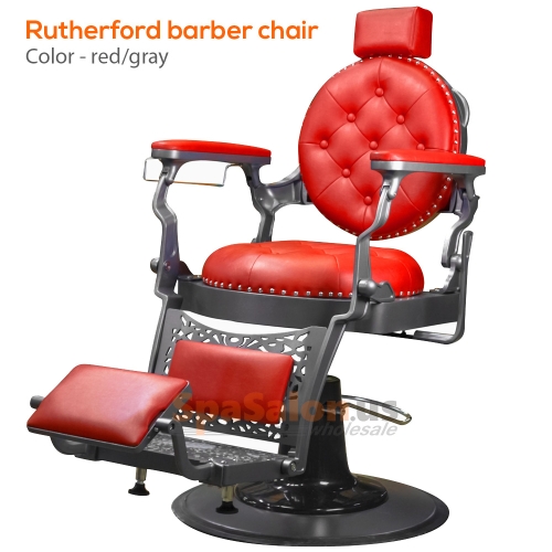 The Rutherford barber chair was created by implementing designs from barber chairs throughout the 19th and 20th century. The result is a classic barber chair that still looks great in today's modern society. With its all metal frame, solid construction, The Rutherford is one of our top of the line barber chairs. It features a geared raising system that supports up to 500 pounds and has one of the most sturdy, fully adjustable bases available on the market  Also includes adjustable head rest, Non-tip base and footrest, and a headrest hook. Available in 3 colors