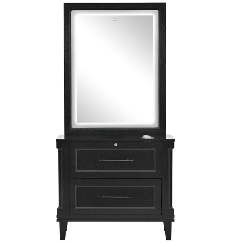 Equal parts wall-mounted styling station, salon mirror, and hair dressing station, the Fairview makes no compromises with its led illuminated mirror, hair dryer slots, and roomy drawers. Choose between two elegant wood finishes for the Fairview styling station, and establish that signature look every beauty and hair salon desires.