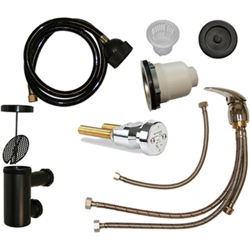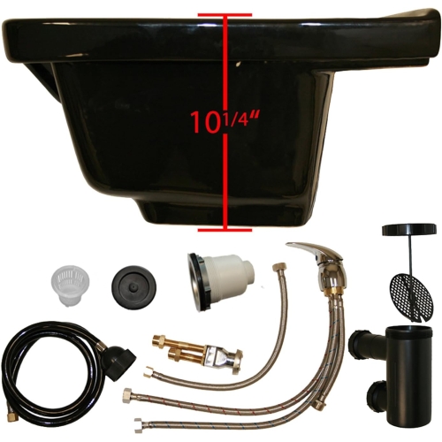 - This bowl comes with all the necessary hardware for installation including mounting brackets, spray hose, fixtures, p-trap, vacuum breaker and drain. It also has a removeable hair trap basket for easy clean-up.