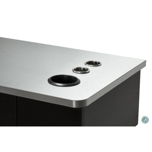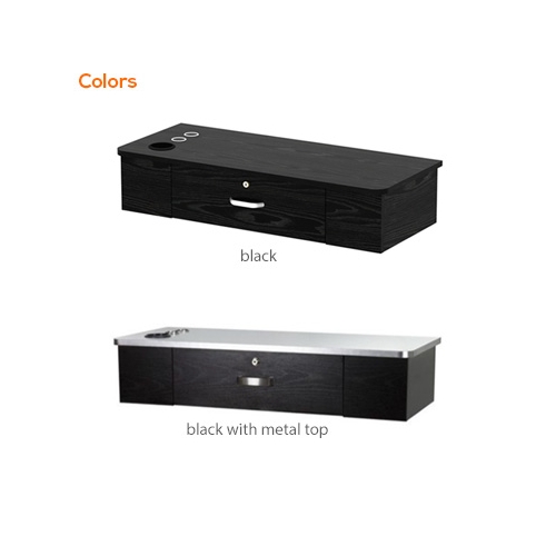 The Markison Wall Mount Station with Metal Top is a stylish wood veneer wall mount styling station that comes equipped with three handy chrome appliance holders. The Markison Metal Top mounts right to the wall for convenience and easy work-flow.