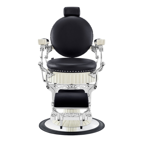 The DIR men's barber chair vintage Mikado blends a contemporary European design with the perfection of skilled craftsmanship. This reclining salon chair with a footrest features a high-quality, antique detailed metal frame with a chrome finish and superior faux leather covering.