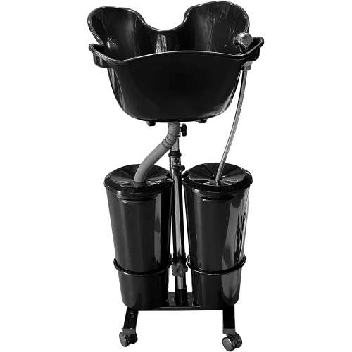 - Simple design with two buckets. One for clean water with pump. One with drain hose for waste water.