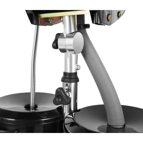 - Simple design with two buckets. One for clean water with pump. One with drain hose for waste water.