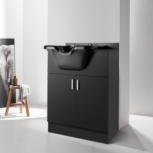 - This Multi-functional Shampoo Station comes with Shampoo Bowl and Storage Cabinet which is a big convenience and saves a lot of efforts because it will be no need for you to try to find the sink, spray and faucet which matches the size. And design of the whole station is of black color and the U shaped round neck rest makes your clients feel relaxed and comfortable.