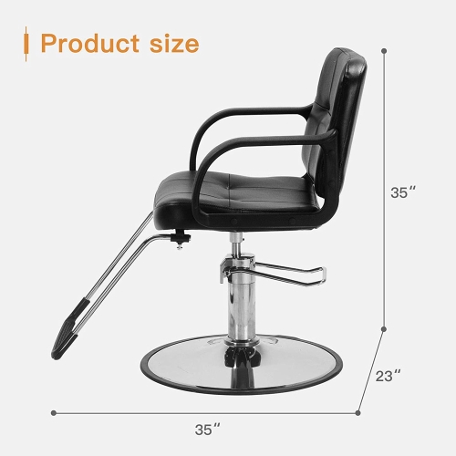 Are you looking for a comfortable chair for your beauty salon? If so, you can't miss this Barber Chair Salon Beauty Spa Chair Styling Equipment. This is our brand new stylish and modern barber chair which is the perfect addition for your barbershop or beauty salons. Made of heavy duty steel frame and PVC leather, this chair is designed for years of use. Elegant foot rest properly positions the clientele, adding even more comfort ability. Don't hesitate to buy one now! Features: Heavy Duty and Solid Structure:This barber chair made of heavy duty steel frame and PVC leather, this chair is designed for years of use. Footrest offers extra comfort for your client. High density foam for extra comfort when you sit down 360 Degree Swivel:This barber chair has 360 degree swivel function, which could make your work much convenient and flexible. Simple Assembly:This barber chair has straightforward illustrations and descriptions. Every screw and pin has its own code and easy to understand the assemble progress. Easy to Clean:Modern stylish black PU leather surface, which is smooth and easy to clean, whatever wet or dry wipe, the dirt won't be very hard to remove. It has a long service time, durable in use Reinforced saddle sticking can prevent ripping and tearing Adjustable, it can adjust to the most suitable and comfortable height