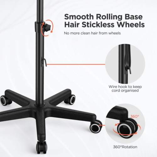 Adjustable salon tray is ergonomic-designed for storaging salon tools and accessories. Two magnetic bowls make it impossible to spill out the content in the bowl accidentally since they are attracted by the metal tray. Uniquely designed hair dryer/brushes/clips holder could keep your hands free, providing more working room. Based on 5 legs rolling wheels, out salon tray could move around quietly, durably and smoothly. Besides, our salon rolling cart is made of high-temperature and chemical-resistant iron materials, which is sturdy for use. This versatile tray with wheels can work as a medical tray, a tattoo tray on wheels, a hair color organizer, a barber tray, or a beauty cart, meeting all your needs. In the improbable case you face any issue with your stylist rolling tray, or you are not fully satisfied with its operation, we offer you a money-back guarantee.