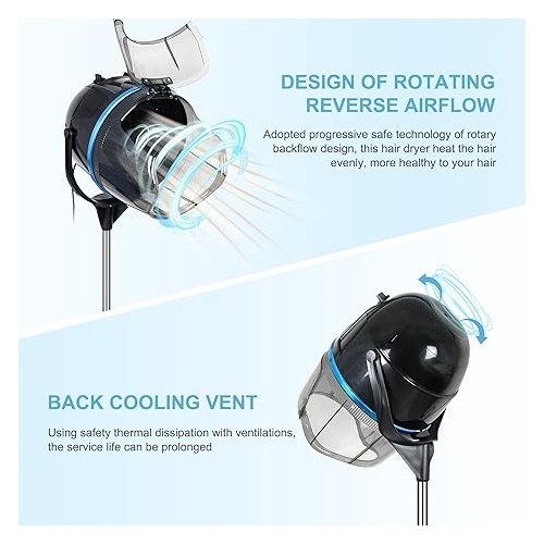 • Professional Floor Hair Dryer : This salon bonnet hair dryer is a good hair-styling tool for coloring, hot-perm, conditioning and hair-drying, hair-treatment and spot-caring, while protecting your hair from dryness, split ends, and frizz. You can enjoy salon hair care and do your favorite hairstyles at home.