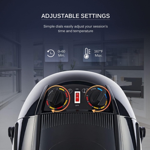 The dials easily adjust the time and temperature, providing up to 167° of heat from 0 to 60 minutes to deliver any hair treatment.