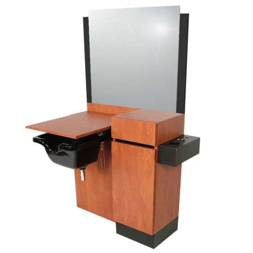 The Reve 44" Wet Station is made 100% in the USA, which guarantees exceptional quality that is unmatched in the salon industry. This fully equipped wet station is built with convenience in mind, and boats a 36” x 36” mirror and side mounted tool holders with space for one blow-dryer and two styling irons. The Reve also offers a full-extension drawer and storage cabinet with shelf, a shampoo bulkhead with a recessed bottle well and a lift lid to give you a work space when the bowl is not in use. The Reve is available in your choice of 8 laminate colors, and for style and design continuity, we carry the entire Reve line by Collins!