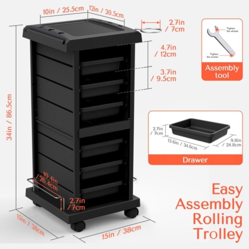 Tasalon salon trolley cart, made of exceptional ABS plastic, is here designed for storing your work equipment. Plus, the rolling trolly casters allow the trolley to be positioned close to your working area, making your job much more convenient. Also you might get a stylish rolling cart together effortlessly in no time with our instructions set and tools included.