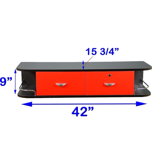 Red Locking French Cleat Wall Mount Styling Workstation with 4-Port Power Strip