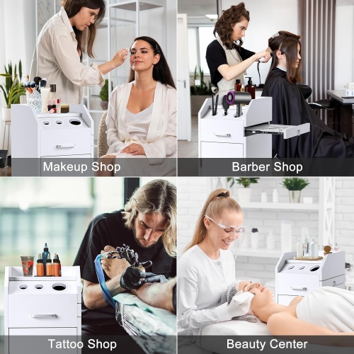 - 3 Hair Dryer Holes - Our beauty salon cart has 3 holes for different grooming tools, such as large curling irons, blow dryers and regular curling irons. Stainless steel material can effectively prevent rust, 3 holes are convenient and enough for your daily work.