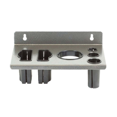 This is a wonderful addition for any salon or salons looking to minimize space. It provides ideal accessibility and functionality for stylists. Comes complete with 1 flat iron space, 1 dryer space and 3 curling iron spaces. Also, it features a hammered tone powder coated finish and heat resistant holster.