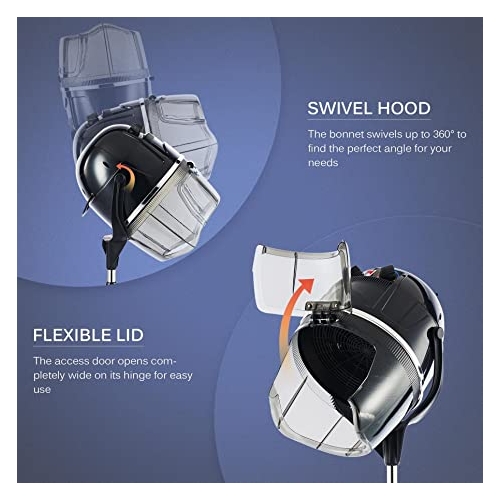 Our hair dryer's bonnet tilts up and down, swiveling up to 360° to find the perfect angle to keep you looking your best.