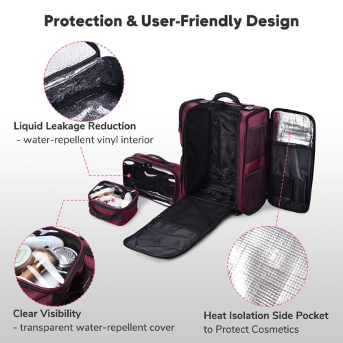 - Heat Isolation Side Pocket to Protect Cosmetics - with interior heat preservation material to keep your cosmetics cool even in outdoor