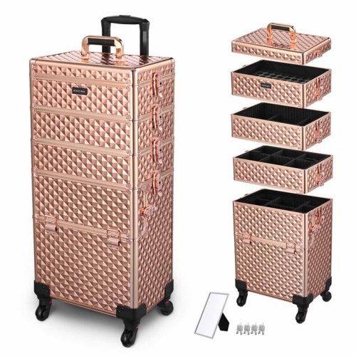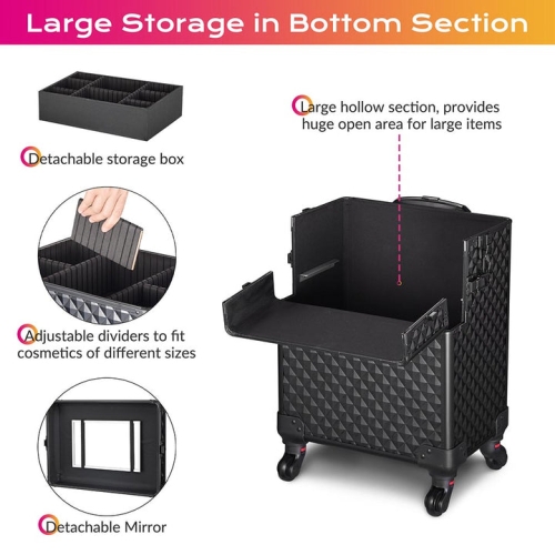 Byootique 4in1 rolling professional makeup case comes with removeable wheels and detachable sections design for customized combination;4 pcs 360-degree swivel removable Spinner Wheel for for smooth movement and labor-saving, also detachable for easy replacement, perfect choice for nail artists, makeup artists, freelance beauticians, makeup lovers to carry around.