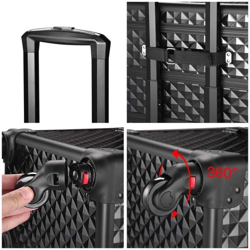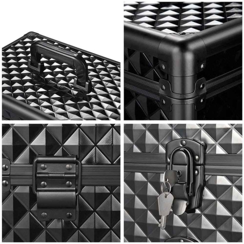 - Unique Diamond Pattern - Byootique Rolling Large Makeup Case with unique black diamond pattern finish, sharp and trendy