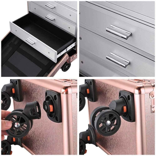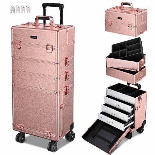 Byootique 4 in1 Rolling Makeup Train Case comes with 4 detachable sections for customizable combination. It features elegant rose gold color with stylish textures, perfectly fits wedding makeup scenario.